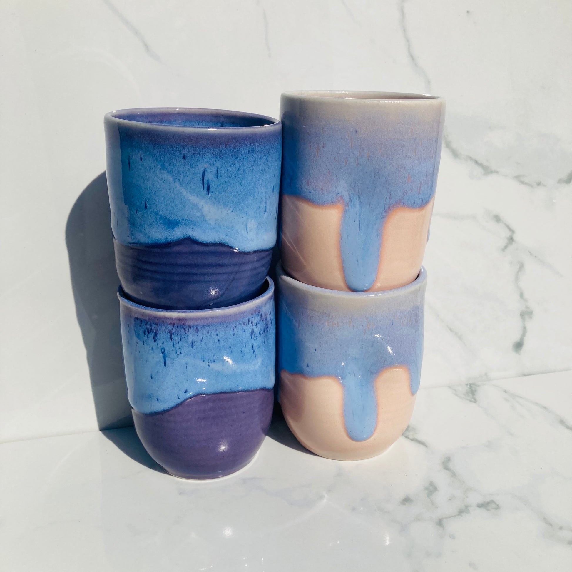 The mystical, intuitive tumbler in indigo sapphire…designed to awaken your crown chakra. Each bespoke, handcrafted piece is one of a kind, with its own unique glaze pattern and hand-sculpted thumbprint designed for a naturally cozy, intimate grip.